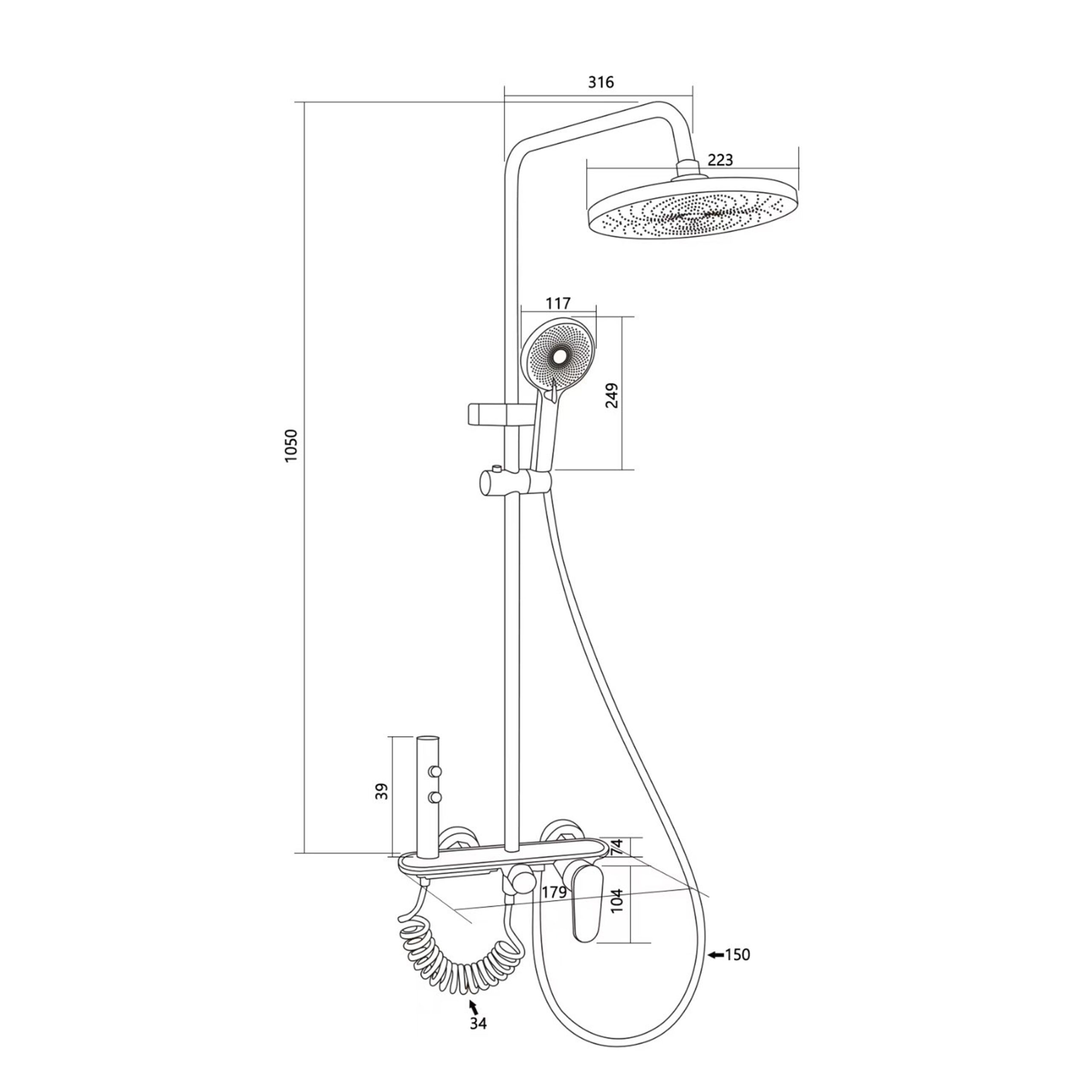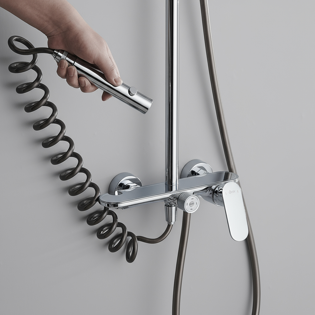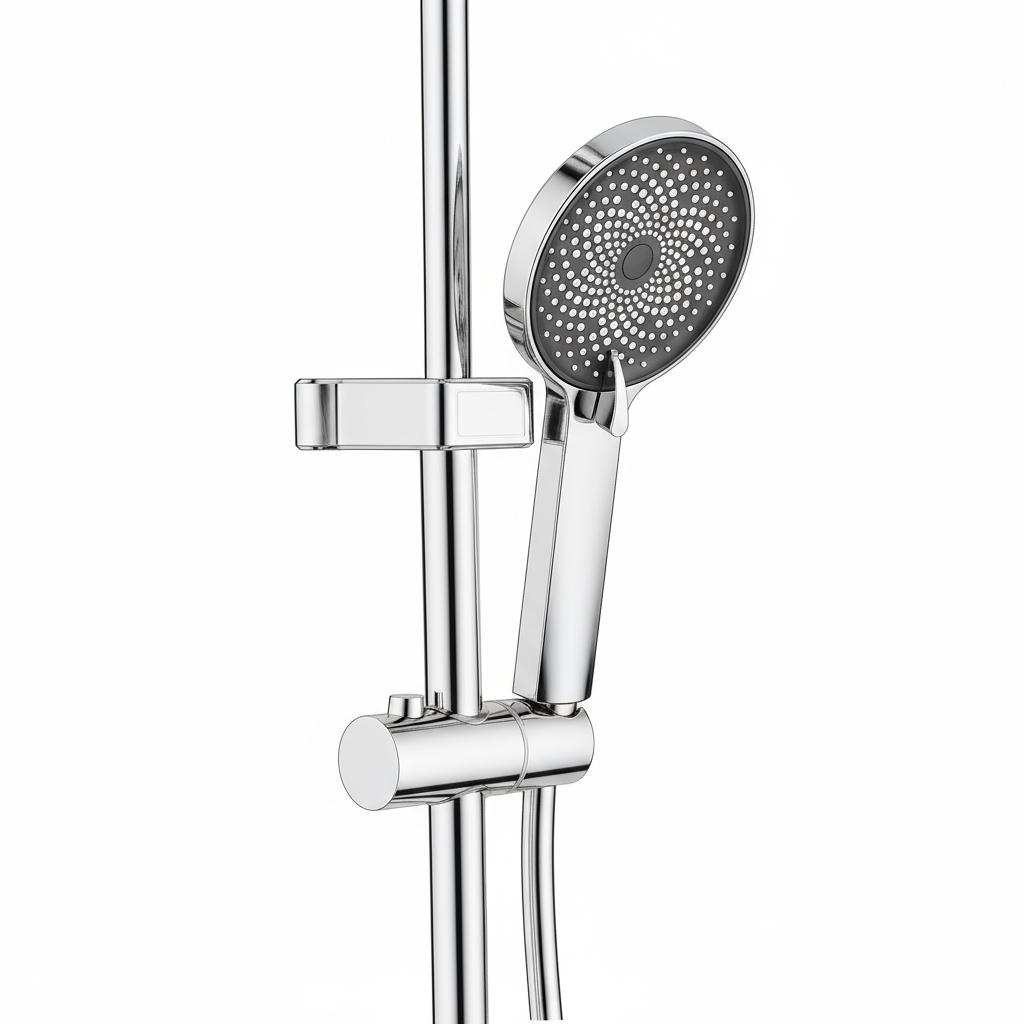 • Rociador superior + rociador de mano en ABS: doble salida para una ducha completa