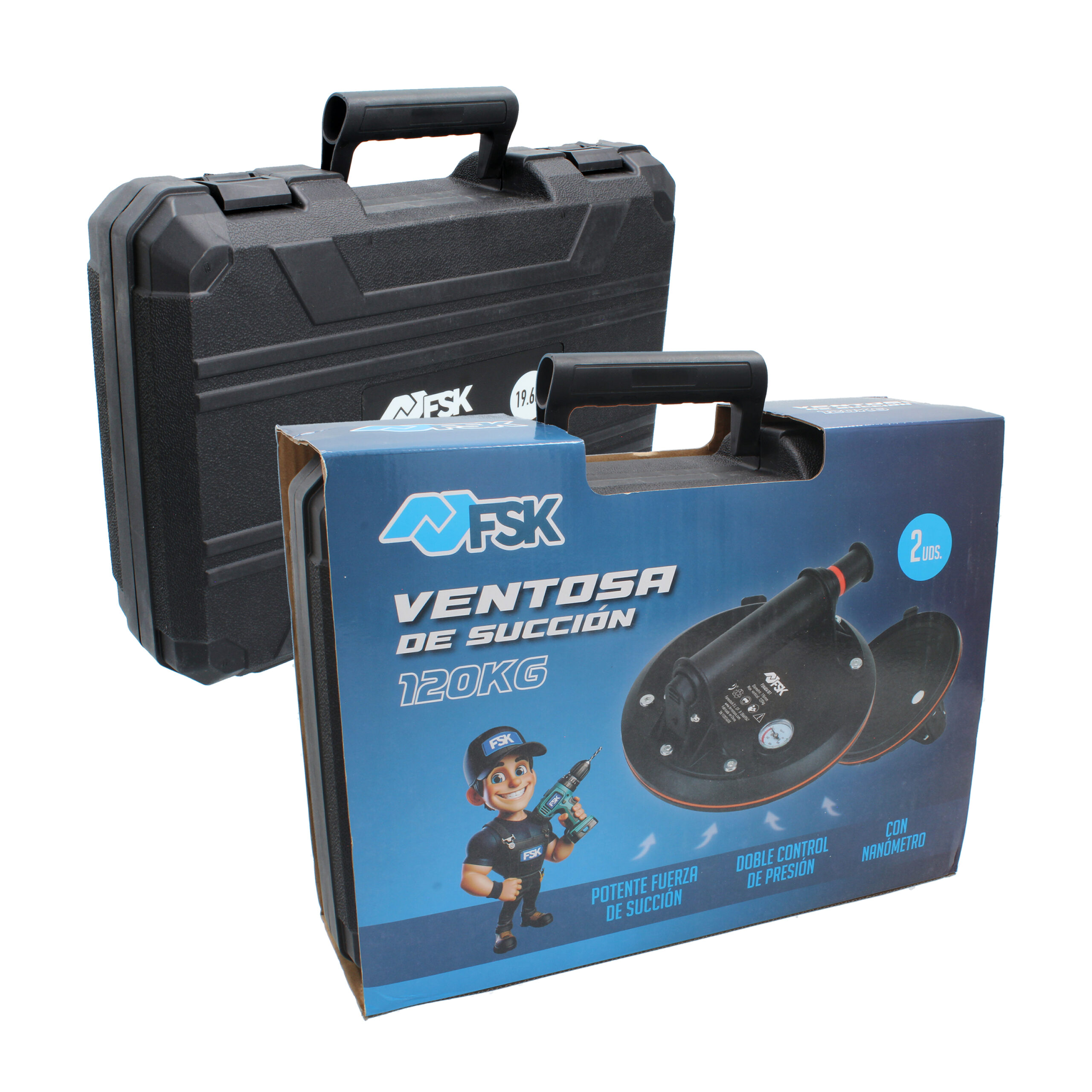 Pack de 2 ventosas manuales con manómetro 120 Kg. Ferrestock.